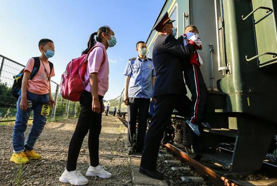 沟口村没有学校,村里的孩子都要乘坐这趟最低票价只有1元钱的列车去博克图等地上学。这趟“慢火车”也就成了孩子上学的“校车”。