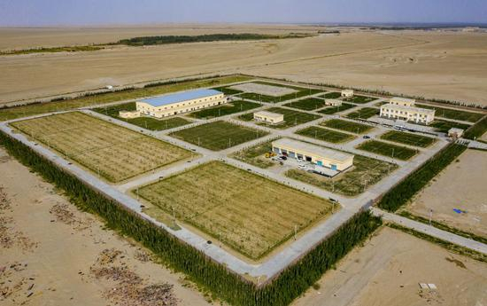 新疆和田地区策勒县供水总厂外景(无人机照片)。 新华社记者胡虎虎 摄