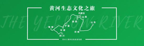 线路组成:青海(青海湖、贵德国家地质公园等)—四川(若尔盖湿地、黄河九曲第一弯、九寨沟、黄龙等)—甘肃(兰州黄河风情线、黄河三峡风景名胜区等)—宁夏(沙坡头景区、沙湖生态旅游区、青铜峡黄河大峡谷等)—内蒙古(响沙湾生态旅游区、敕勒川草原文化旅游区、库布其七星湖沙漠生态旅游区、通湖草原旅游区等)—山西(吉县壶口瀑布、偏关老牛湾等)—陕西(宜川壶口瀑布、延川乾坤湾、华山等)—河南(天鹅湖国家城市湿地公园、郑州黄河国家湿地公园、兰考东坝头黄河湾风景区等)—山东(黄河国际生态城、黄河口生态旅游区等)