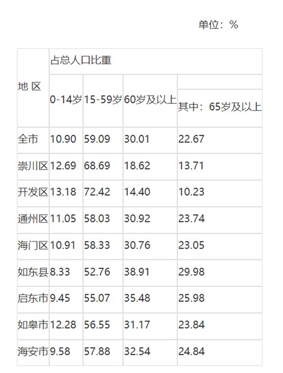 其中,位居第一的南通这一比例达到了22.67%,成为我国老龄化程度最深的城市。