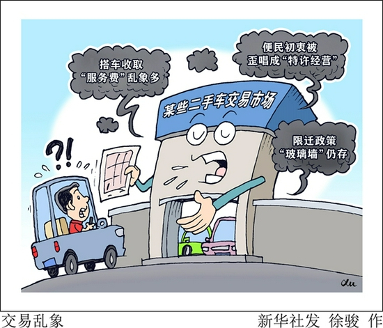 督查组暗访多地二手车交易市场发现,在哪家办理转移登记,就需要在哪家办理税票,已经成为二手车交易市场垄断的手段,即便在其他交易机构开具税票,也需要重新开具或缴纳费用。本为便民的初衷,却被歪唱成“特许经营”。