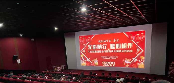 1950年,新中国成立后第一个虎年,志愿军战士跨过鸭绿江,浴血奋战。如今又是虎年,牛山街道组织辖区青年走进幸福蓝海国际影城,集中观看红色电影《长津湖之水门桥》,重温这段峥嵘历史。电影承接上篇,故事不再介绍宏观决策,直接聚焦“三炸水门桥”。它讲述的,就是一群普通战士如何建构起自己与祖国之间的精神链接,如何舍生忘死地投入一场“立国之战”。银幕上,开进风雪的那趟列车,七连应到157人,实到157人。影片尾声,伍万里报数,应到157人,实到1人……江边打水漂的孩子经历残酷战争,终于成长为一支军队的坚强战士,而影院里,早已一片泪水滂沱。银幕上,阳光从山坳间透过,七连战士望着光的方向说,那里就是家。一群年轻的英雄向祖国敬礼:“新中国万岁!”屏幕外,观影青年说,“70多年来,从‘最可爱的人’到我们,新中国是我们共同的家,向英雄致敬。”(杨惠雅)