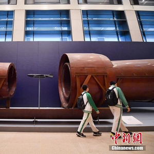资料图:学生在中国国家博物馆参观展出的“新中国首座大型低速回流风洞”。 中新社记者 田雨昊 摄
