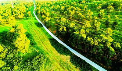 除了坚持不懈,还要与黄沙斗智斗勇。在这场治沙战役中,人们逐渐摸索出了适合半沙化土壤的科学营林方法——“穿靴、戴帽、贴封条、扎腰带”。“穿靴”,就是在河岸边,营造雁翅形护岸林;“戴帽”,就是在流动的沙丘上网状开沟,秧苗结绳压条固定沙丘;“扎腰带”就是在半坡环造防风林带;“贴封条”就是在侵蚀沟沿和风蚀残堆上密植造林、种草,以后再不断补植。