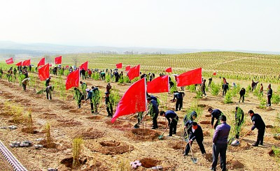 20世纪50年代“哪里有风哪里栽,先让局部绿起来”;60年代突出风沙治理,70年代狠抓防护林体系建设,80年代提高造林质量,90年代建立绿色屏障;进入21世纪,按照“山上治本立体化、身边增绿园林化、生态致富产业化、环境保护社会化”的思路,全面加快林业建设由“绿”变“富”步伐……