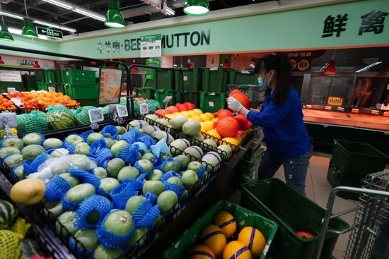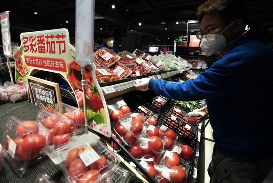 海南的圣女果、山东的茄子、河北的萝卜……店里销售的蔬菜、水果、肉品等生鲜商品都是原产地直采,这为超市能够及时补给提供了保障。张传涛说,今天店里蔬菜供应量达到15吨,比昨天增加20%,米面粮油供应量比昨天增加了两倍,同时商品价格保持不变。