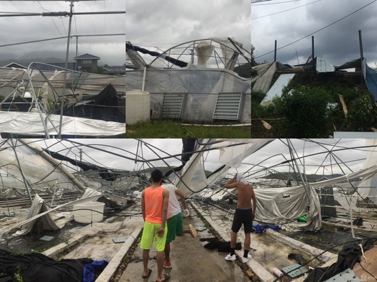 被“天鸽”掀翻的试验大棚