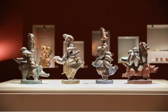 二层是主场外交的对外赠礼,还分大洲展示了不同国家赠送的特色礼品。除了丰富的展品,展馆里还有多个互动装置,比如人力三轮车装饰双屏互动、《丁丁历险记·蓝莲花》瓷偶互动装置等,寓教于乐,特别适合孩子在玩中感受艺术的魅力。