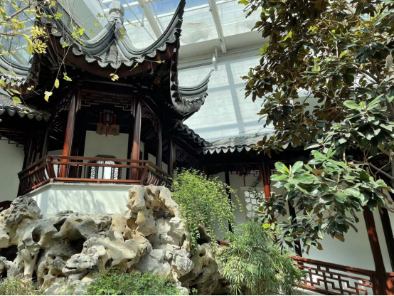 最大的亮点是展厅内还原仿建了几座各式园林,展览和园林浑然一体,观景时仿佛置身园林中,移步换景,趣味十足。