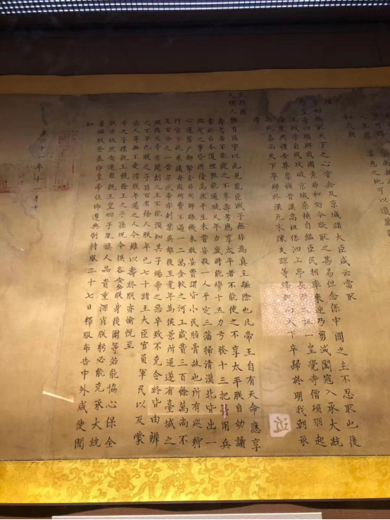 首先要推荐的是“中国档案珍品展”,里面各种“镇馆之宝”级别的档案珍品云集,个个背后有故事。比如,大明混一图(中国目前已知尺寸最大、年代最久远保存最完好的世界地图),丹书铁券(即民间叙事中所说的“免死金牌”),康熙传位诏书,孔子家族档案……
