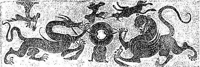 “牛郎织女”神话形成时间约于先秦,其下限不会晚于战国晚期。云梦睡虎地出土的秦简《日书》甲种《取妻》篇中,“牵牛以取织女,不果,三弃”,就已出现了牛郎织女婚配的记述。两汉时期,“牛女传说”约已成型。《汉书·武帝纪》中曾记昆明池中有牵牛、织女二雕像,“昆明池中有二石人。立牵牛、织女于池之东西,以象天河。”班固的《西都赋》、张衡的《西京赋》对此均有描述。而汉画像石中的牛郎织女,多以普通农民、农妇的形象呈现,是当时农业社会“男耕女织”自然经济模式的折射。四川郫县新胜发掘的石棺盖顶画像上,刻有“龙虎衔璧”与“牛郎织女”画像。牛郎手牵一牛,奋力前行,而织女手执机梭,正焦急地等待牛郎的到来。