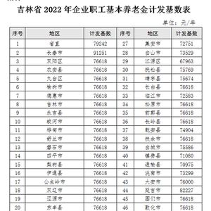 吉林也发布2022年企业职工基本养老金计发基数,用于企业职工退休(领取待遇)人员基本养老金计发。