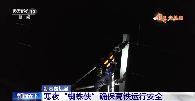 新春走基层丨寒夜“蜘蛛侠”确保高铁运行安全