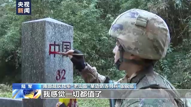 南部战区陆军“老山旅”某边防连指导员杨绕显:所有的努力、所有的付出都是值得的。对我们来说,不管任务多么危险,能用双脚去丈量祖国的土地,守卫边境安全,我想这就是我们边防军人最大的荣耀。