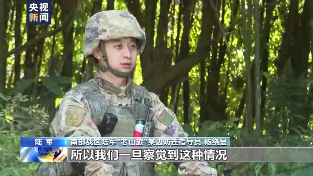 南部战区陆军“老山旅”某边防连指导员杨绕显:我们巡逻夏天最怕的就是遇到暴雨,因为一下雨,河水就会上涨,一般上涨至我们的腹部,我们需要借助绳索才能够过河,那是相当危险。冬天最怕的就是遇到失温,因为汗水和雨水混在一起以后,加上海拔高、温差大,人体就容易失温,所以我们在巡逻的过程当中,休息的时间都不能太长。