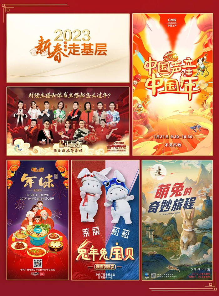 民以食为天!财经频道(CCTV-2)特别节目《一起年夜饭》探访百姓生活,和全国人民一起“端着饭碗等春晚”。科教频道(CCTV-10)1月20日至29日播出系列节目《2023味之道·年味》,受众可一览各地春节民俗和风味美食。少儿频道(CCTV-14)1月22日至28日推出春节特别节目《兔年兔宝贝》,展开七场涵盖兔子百科知识的亲子大比拼。对着屏幕“云撸兔”,带你了解兔子不为人知的很多面,快与纪录频道(CCTV-9)一起开启《萌兔的奇妙旅程》!