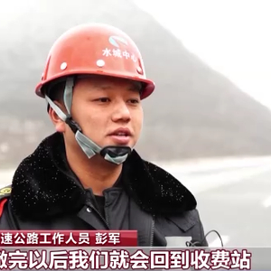 高速公路工作人员 彭军:我们每天早上七点对路上进行融雪剂布撒,撒完以后我们就会回到收费站,对社会车辆进行一个带车压道,确保社会车辆控制车速,安全行驶。