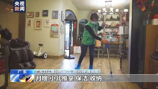 广东力工集团有限公司总经理 黄智维:月嫂、小儿推拿、保洁、收纳其实都是热门行业,我们现在有个别工种的收入比去年要增加了3到6个点。