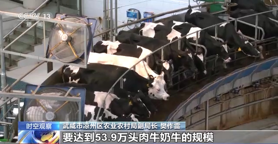 武威市凉州区农业农村局副局长 樊作雷:我们抢抓国家乡村产业振兴的机遇,让产业振兴辐射更多农户和劳动力。我们预计今年要达到53.9万头肉牛奶牛的规模。