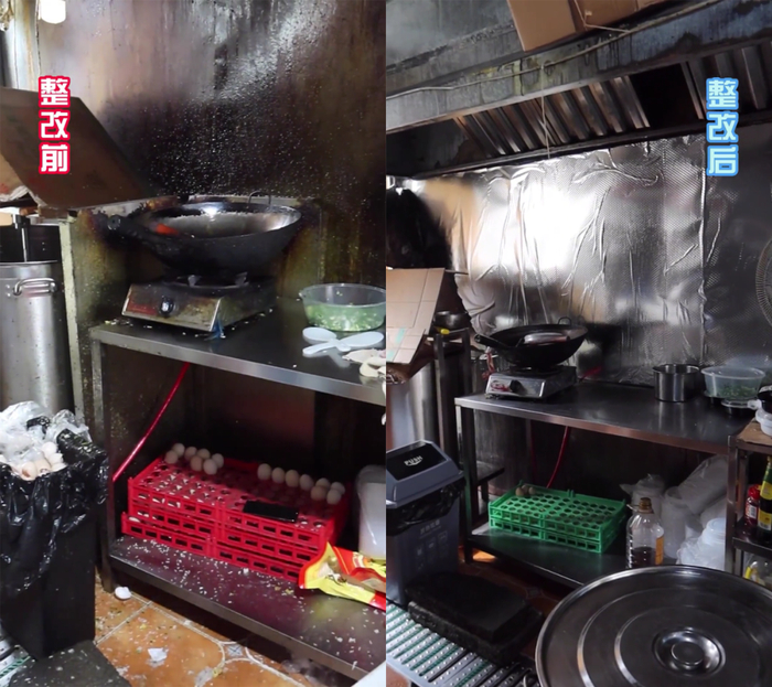 原来,老板娘根据之前“你点我查”的视频,把店里需要整改的问题记录下来,贴在醒目位置,提醒大家改正。如今店内的后厨环境大有改善。