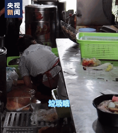 店员蹲在潮湿地板上,徒手清理垃圾。