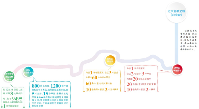 这一路,清华园车站旧址、颐和园益寿堂、香山革命纪念馆、中共中央香山驻地旧址等一批重要点位率先立起标识标牌。今后,“新中国成立主题片区主要革命旧址、纪念设施标识标牌”将陆续统一,并通过搭建更加丰富、多元的展览平台,彰显首都红色文化特质。