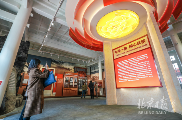 红色记忆,被着重亮出来。屋外,600余年的历史盘桓在灰瓦红柱间,观众可在闹市中赏古韵。屋内,“中华一脉 同心筑梦——中国共产党民族工作光辉历程和伟大成就主题展”和“蒙藏学校旧址专题展”揭幕,420余张照片,280余件实物和档案汇聚到中国共产党历史上第一个由少数民族党员组成的党支部诞生地,带领观众重温中国共产党百年民族工作的光辉历程和取得的伟大成就。