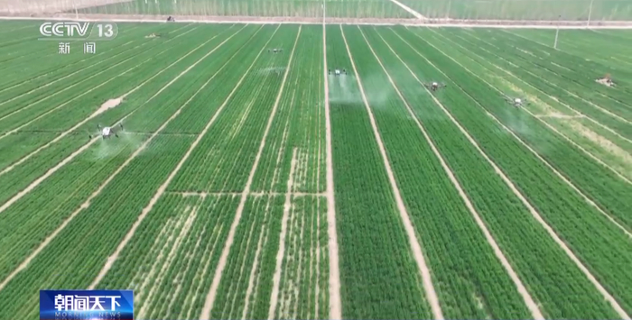 在山东德州义渡口镇高标准农田片区,技术专家正在为麦田进行统一病虫害防治。记者了解到,和每亩年产1000公斤粮食的“吨粮田”不同的是,这片高标准农田里包含了1.5万亩吨半粮田,平均亩产1576.3公斤,达到吨半粮的产能。在吨半粮田里,我们看到小麦的颜色深绿、茎秆粗壮。