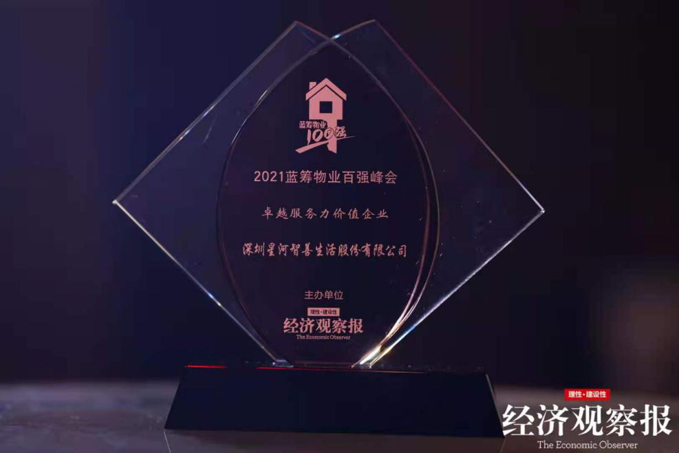 6月22日,由经济观察报主办的第六届(2021)蓝筹物业百强峰会在北京举行,现场公布百强物业企业榜单,星河智善生活荣获“2021蓝筹物业百强企业”及“卓越服务力价值企业”两项荣誉。