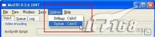 6) 启动 MeGUI 点击 Options 菜单下的 Update,自动升级,耐心等候更新过程。