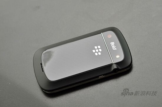 上部一颗500万像素摄像头,支持4倍数码变焦,最大支持2560*1920分辨率照片拍摄,并支持720P高清摄录。然而黑莓9900摄像头并不支自动对焦,具体拍摄效果后文中会详细介绍。摄像头右侧为Bold系列标志和LED补光灯,下方是黑莓手机不可缺失的“七星图”标志。整体机身背部设计简约,商务且不失档次。