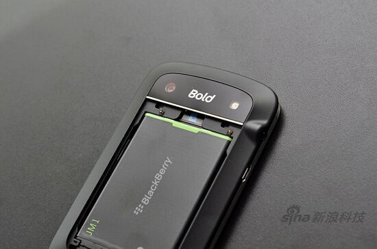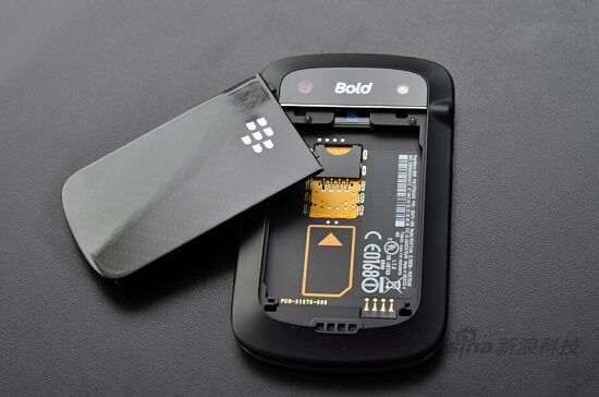 黑莓9900配备了1230mAh锂电池,SIM卡槽位于电池下方,而Micro SD扩展卡与电池平行,不可实现热插拔,更不可在电池在位的时候强行插入Micro SD卡,极易卡住造成损坏。正确的方法是,取出电池后方可插拔扩展卡。