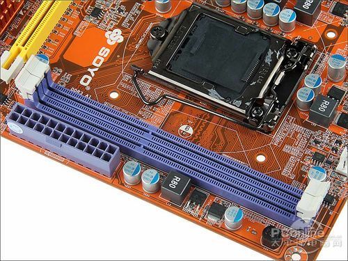 梅捷 SY-I6H-G采用小板设计,搭配有橙色的显眼色调。其基于英特尔H61芯片组设计,支持LGA 1155接口的处理器,整体设置有两根内存插槽,支持双通道DDR3 1333的内存,最大容量为16G。