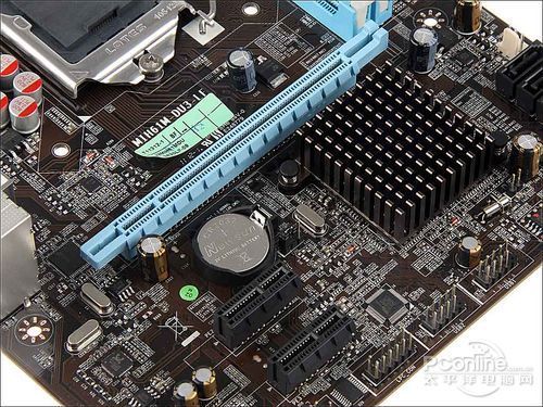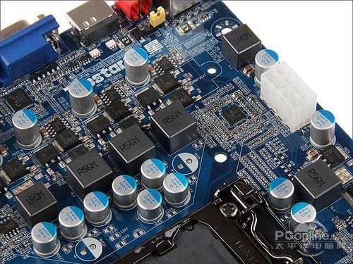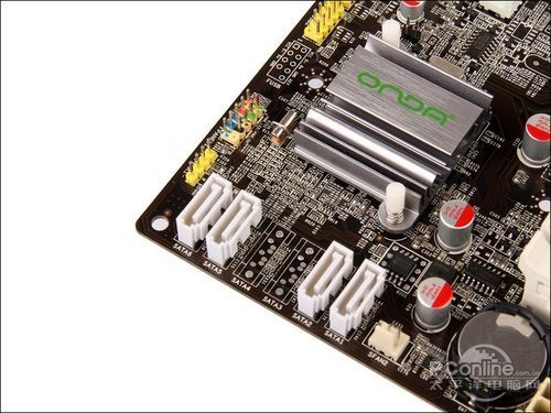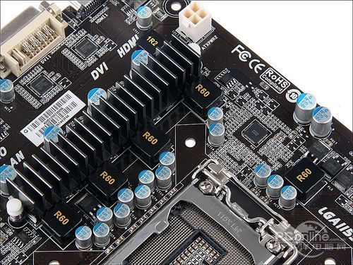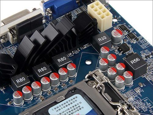 捷波 MIH61M-D基于Intel H61芯片组,采用单芯片组设计。主板采用了Micro ATX小板设计,咖啡色PCB板材,主要定位入门级整合平台用户。主板采用了3+1+1相供电设计,供电部分采用的是全固态电容,由于多数Sandy Bridge处理器不能超频,因此对于入门级用户来说供电设计完全够用了。