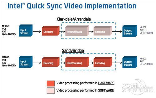 第二代Core i3/i5/i7的核芯显卡新增内置了编码器,支持MPEG2、VC1和H.264硬件编码,Intel称之为“英特尔高速视频同步技术”(Quick Sync Video)。根据英特尔的相关资料显示,用核芯显卡进行以上视频格式的硬件编码,速度是软件编码的两倍以上!对于常用PSP、iPAD、智能手机或其他 MID设备看视频的用户,这个硬件编码非常实用。