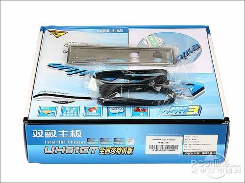 双敏 UH61GT全固态特供版基于H61芯片组,拥有双敏推出GC-Engine动力引擎,配备N+1+1相供电、CPU智能加速、GPU智能调频、显存动态调节、风扇自动控转、EUP 0损耗节能等六大功能,能够更好地发挥出SNB处理器的性能。