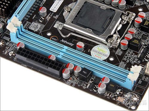 杰微 JWH61MT采用蓝色PCB,Micro ATX小板设计,基于Intel H61芯片组设计,支持LGA 1155全系列处理器,完美发挥出第二代酷睿i处理器的威力。在供电方面,杰微 JWH61MT采用了3+1+1相供电设计,并搭配有大量的封闭电感和固态电容,让主板在高负荷运转下能稳定运行。