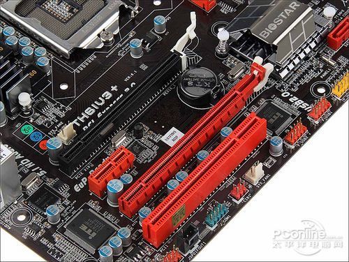 映泰 TH61U3+采用黑色PCB,Micro ATX小板设计,采用英特尔最新H61芯片组,支持LGA 1155接口处理器。供电部分,映泰 TH61U3+采用3+1+1相供电设计,全固态100% X.D.C固态电容。内存方面,主板提供2条DIMM插槽,支持双通道DDR3-1333/1066MHz,最大支持8GB。主板还采用了EUP与 G.P.U双重节能技术,再加上映泰独家的高清遥控技术,功能非常丰富。