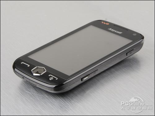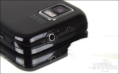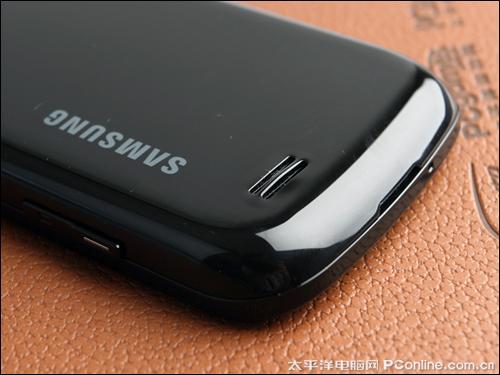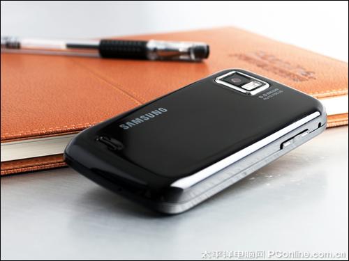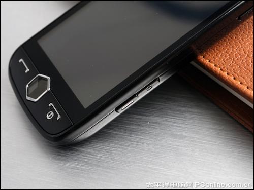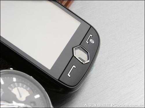 三星手机的做工一向为人称赞,此款I8000U同样保持了三星一贯的水准。先看正面,除开那块占了八成面积的大屏幕外,键盘区正中的六角形按钮无疑是最大亮点,类似宝石的切割和金属镶边贵气十足,而黑色金属拉丝左右键又够稳健阳刚,虽然I8000U键盘布局简洁,面积也不大,但是材质的完美运用和优秀做工已足以让人印象深刻。
