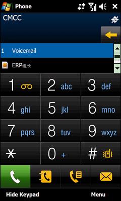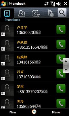 经过改造的I8000U短信界面兼顾实用和美观,比起原来的WM短信界面好看也好用多了,颇有S60的风格。和媒体库管理一样,I8000U的通讯录支持滑动查找,颇为便捷。