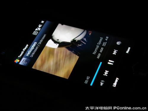 不过,大家熟悉的TCPMP播放器对I8000U的支持不是很好,所以我们使用了机器内置的Touch Player来取代。虽然没法看到具体的帧数,但是在试播两个720×432的视频文件时,I8000U非常流畅,完全没有任何迟缓拖帧的情况出现。如此丰富的格式支持,再加上480×800的高分辨率和3.7英寸的AMOLED液晶屏,我们完全可以说使用I8000U来代替国产MP4。