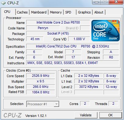 | 处理器型号 | Mobile DualCore Intel Core 2 Duo P8700 |