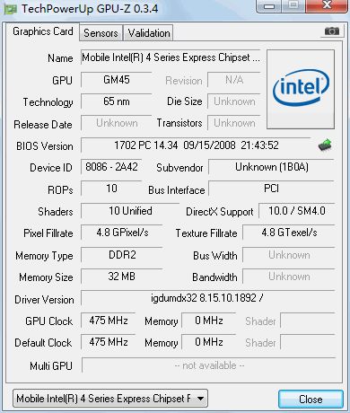 在芯片组方面,S370采用了Intel GM45+ICH9M的搭配。由于GM45芯片组内置的X4500HD集成显卡核心速度为533MHz,所以图形核心频率只有475MHz的GS45芯片组要比GM45在功耗上有一定优势,而GS45+ICH9M也就成了大多数追求低功耗的笔记本常用的搭配方式。这款S370虽然没有采用超低电压设计,但是我们实际检测的S370所采用的图形单元核心频率却为GS45芯片组标准的475MHz,这样的数值表明其在图形处理性能方面要略差于同类采用GM45芯片组的产品。