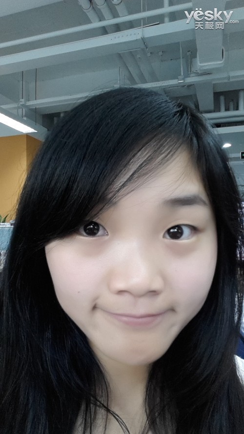前置210万像素摄像头,方便自拍需要,尤其是配合多种拍照模式,这也是让笔者比较赞的地方之一,从上图的一张美肌模式下的自拍照来看,虽然前置摄像头仅有210万像素,但拍出来的照片非常清晰,更重要的是,它的美化效果很自然,皮肤修的非常干净白皙,恰到好处,且会自动识别脸颊增添红晕。