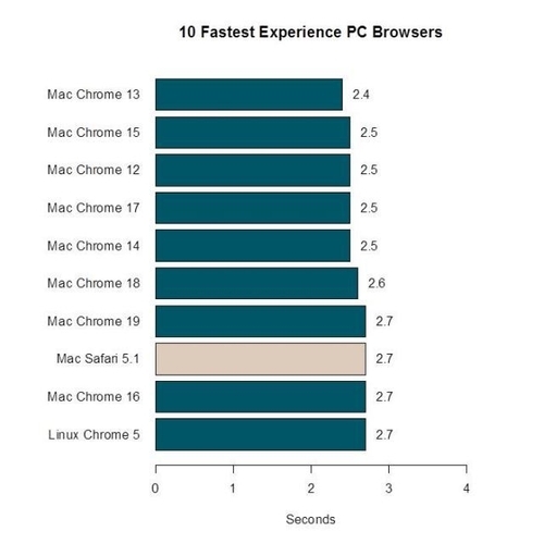 在Mac上的测试结果显示Chrome 13是读取速度最快的浏览器,平均单页读取时间2.4秒,要高于Chrome浏览器。
