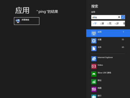 无论你寻找什么文件、应用、设置,搜索按钮都将是首选。鼠标移至屏幕右上(下)角调出Charm,第一位便是搜索按钮,或者直接使用“Win + Q”组合键打开应用搜索,找到“屏幕键盘”并打开;或者按下“Win + R”,输入“osk”也能够直接打开屏幕键盘。