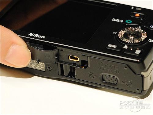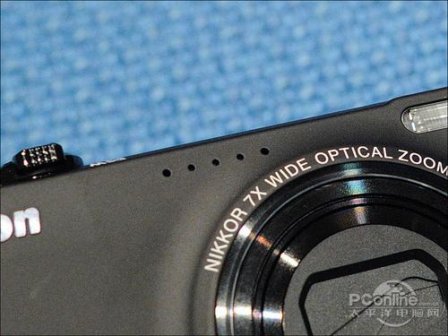 在镜头上方有五个小孔,是拍摄视频时的拾音麦克风。大家别看小孔这么多,就以为尼康S6000拍摄视频时会有立体声拾音,其实S6000还是单声道拾音的。