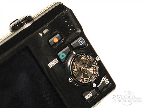 这个角度可以看看尼康S6000的机身厚度,还可以看看操作按键的突出程度,中间的“十字键+转盘”的手感相当好,不过我比较怀疑在S6000这样没有手动功能的卡片机上,设置“控制转盘”的必要性。