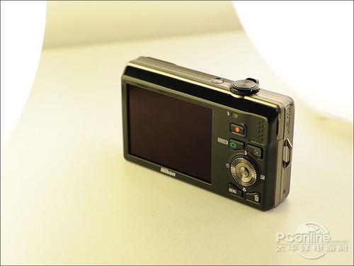 而尼康S6000机身背面,则是配备2.7英寸23万像素LCD(宽视角、带有防反射涂层)。至于为什么不用上尺寸更大、像素更高的LCD,我觉得是出于机身体积控制以及成本控制的原因。幸好这一LCD显示效果不错,色彩准确,画面显示也尚算细腻。顺带一提,黑色版S6000后面板与前面板不同,表面是钢琴烤漆质感。