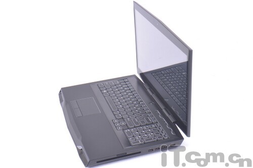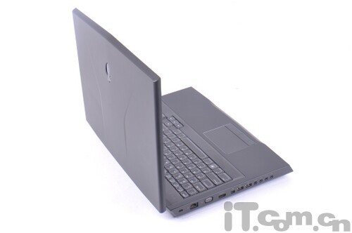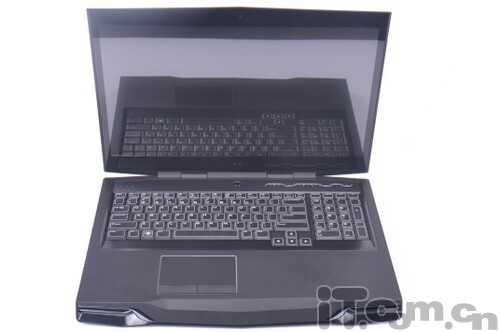 M17x R3笔记本在外观上舍弃了阳极氧化铝外壳采用Soft Touch材料不仅更加美观而且重量也大大减轻,同时整个机器在尺寸上也比M17x R2要小一圈。